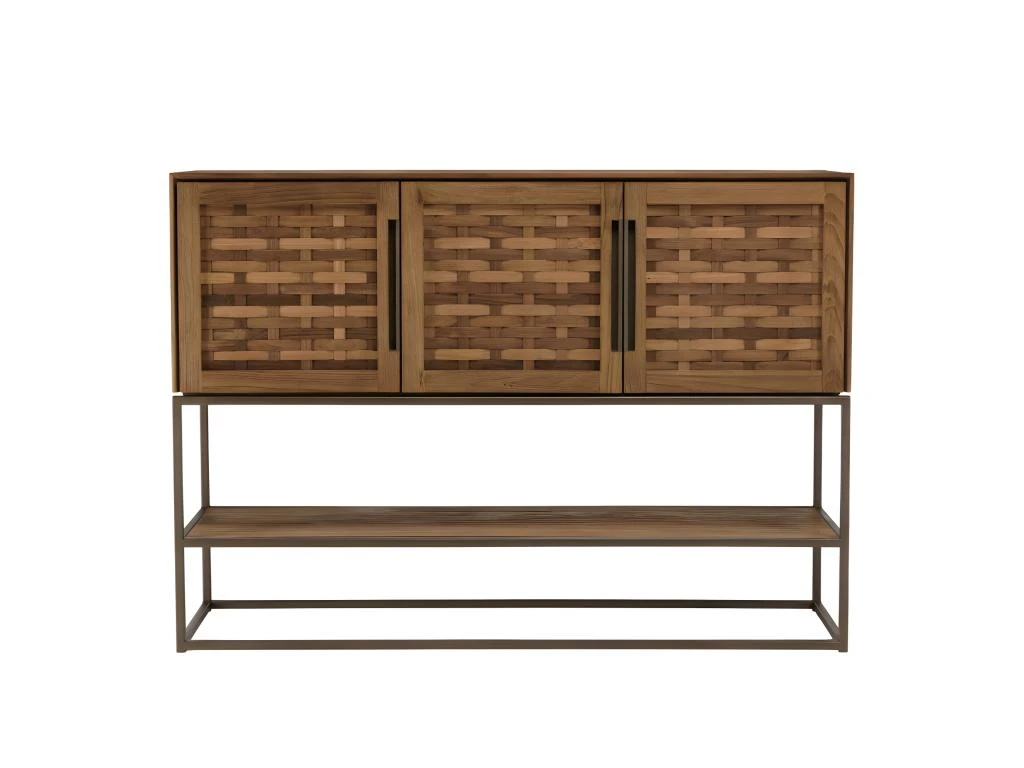 Buffet 3 Portes Koln, Couleur Blanc Brossé Et Bois, 136,5 Cm Largeur