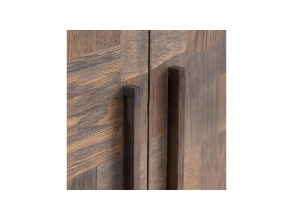 Totalement réalisée en bois de Mindi teinte marron et mettant en avant des portes pourvues d’un parquetage de bois, cette armoire lingère bénéficie d’une très belle qualité perçue.