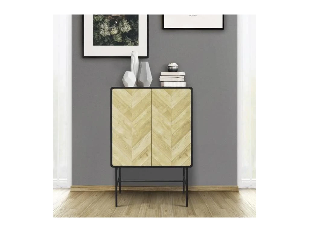 Buffet 3 Portes Et 3 Tiroirs – MDF – Naturel Et Noir – CARATANA