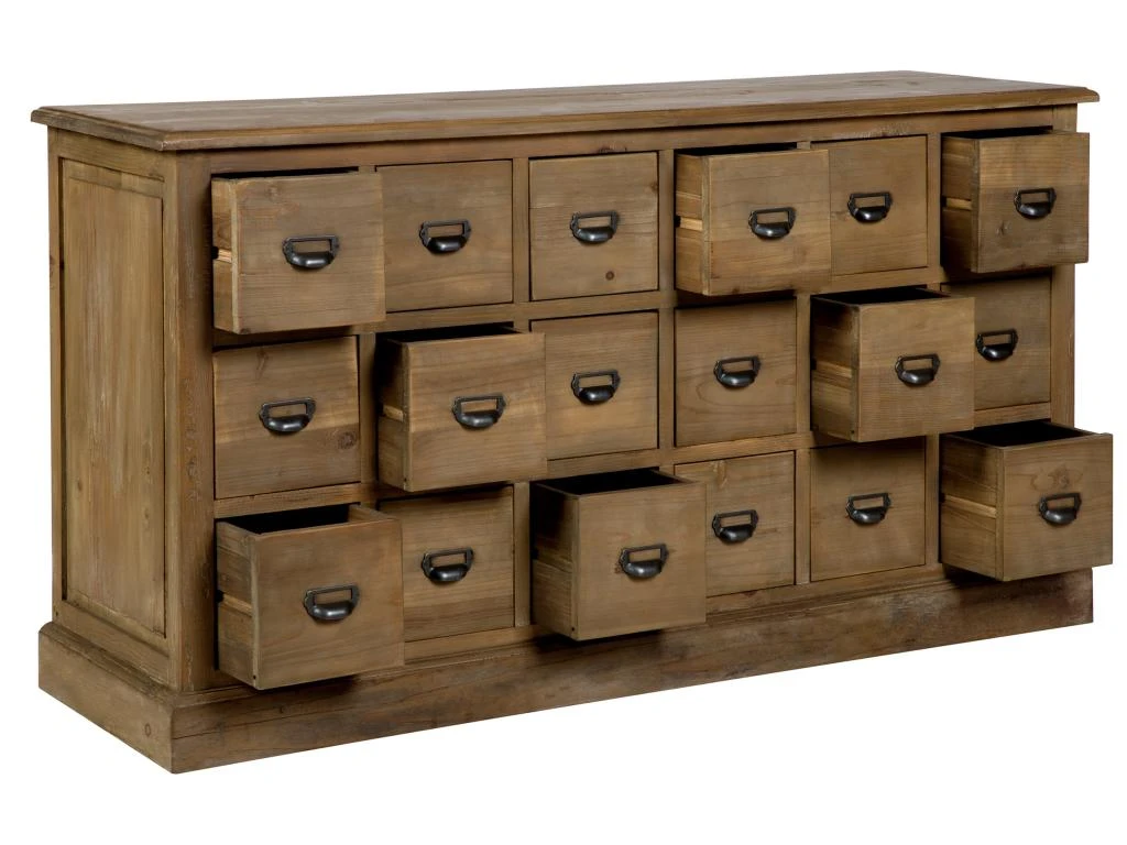 Avec son charme provençal revisitĂ© par l’Ĺ“il de designers contemporains, le buffet 18 tiroirs Miramas en bois est une merveille d’ingĂ©niositĂ©. Les amoureux de meubles de mĂ©tier ne rĂ©sisteront pas Ă son rangement conçu pour allier esthĂ©tique indĂ©modable et praticitĂ© indispensable.