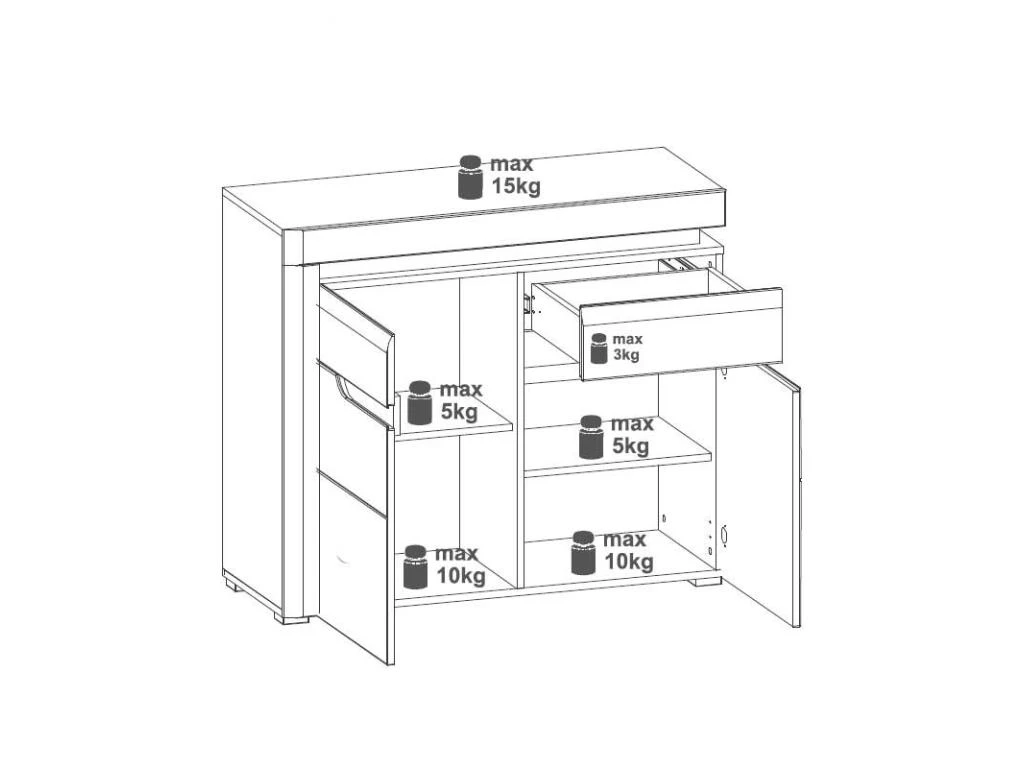 Buffet Haut Avec LED Collection KILES Deux Portes. Coloris Blanc Et Chêne. Porte Vitrée à Droite