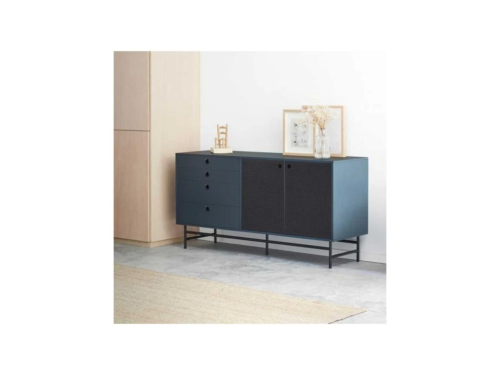 Belle enfilade apte à prendre place dans un coin repas au mobilier éclectique, ce meuble bénéficie en outre d’une mise en teinte originale qui ne manquera pas de devenir le point d’attraction de votre salle à manger moderne.