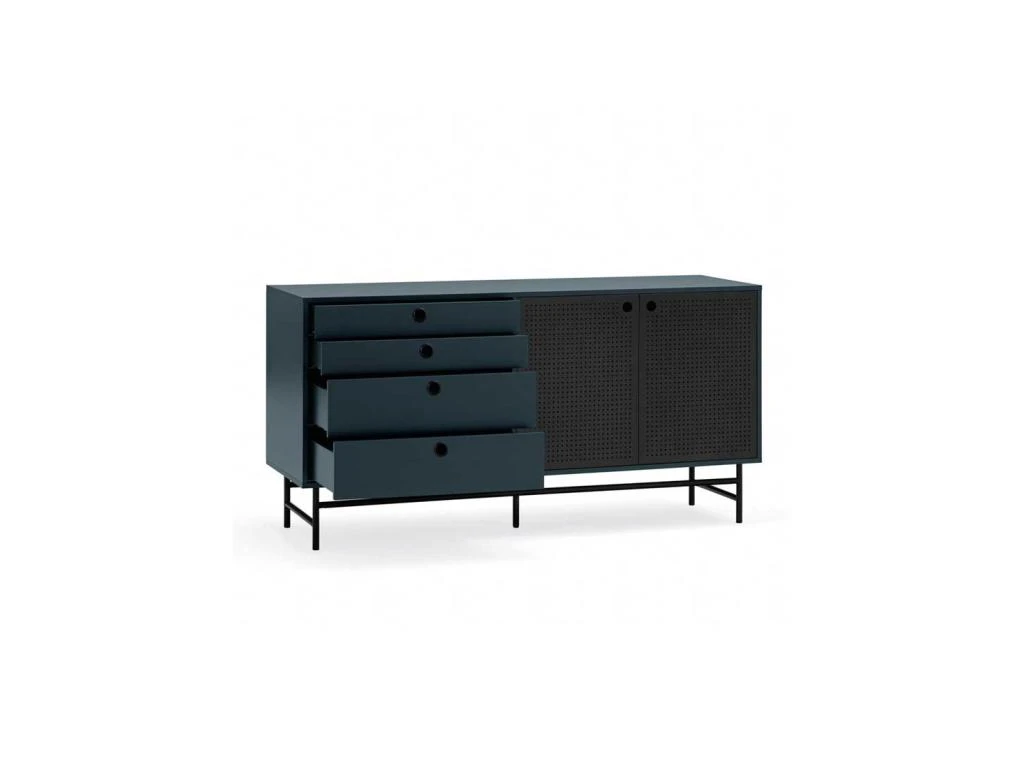 Le design avant-gardiste est nuancé par une lointaine inspiration du style mobilier Industriel (portes ajourées) assurant un look fédérateur et un mariage aisé avec des meubles de styles bien différents.