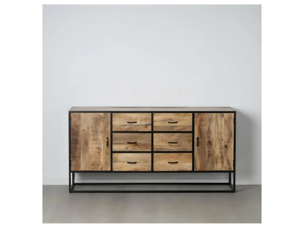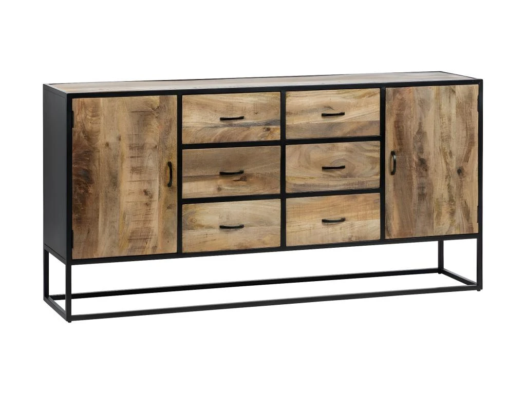 Mettez en scène une salle à manger à la pointe de la tendance mobilier Industriel avec ce buffet 2 portes 6 tiroirs réalisé en bois de Manguier.