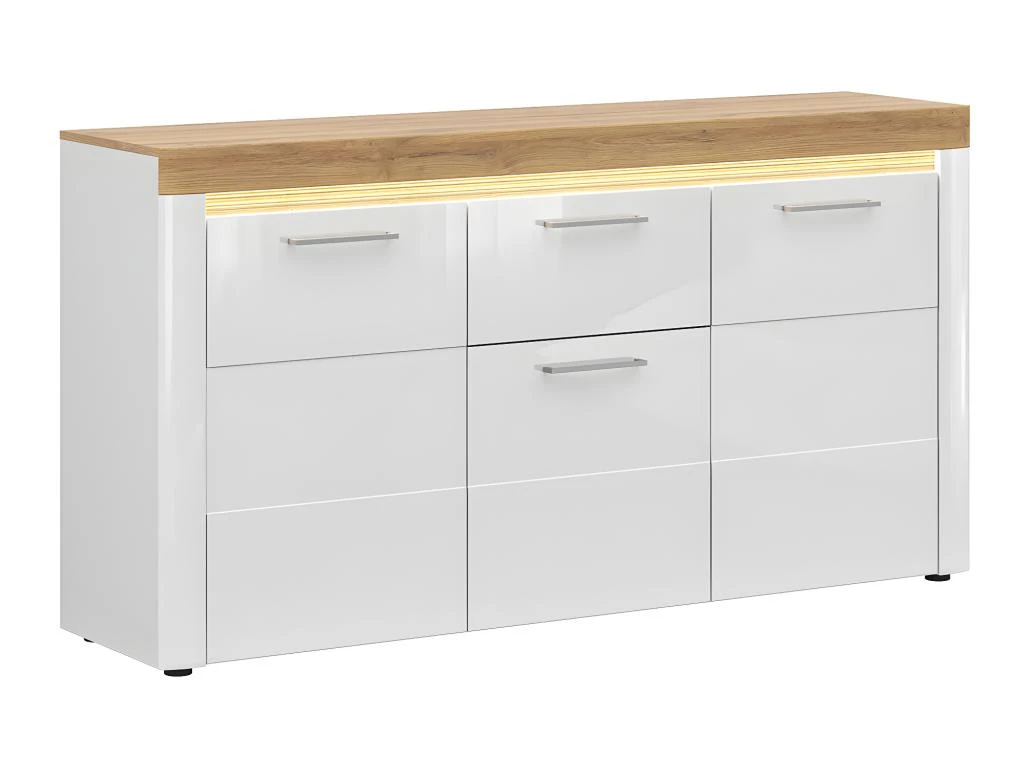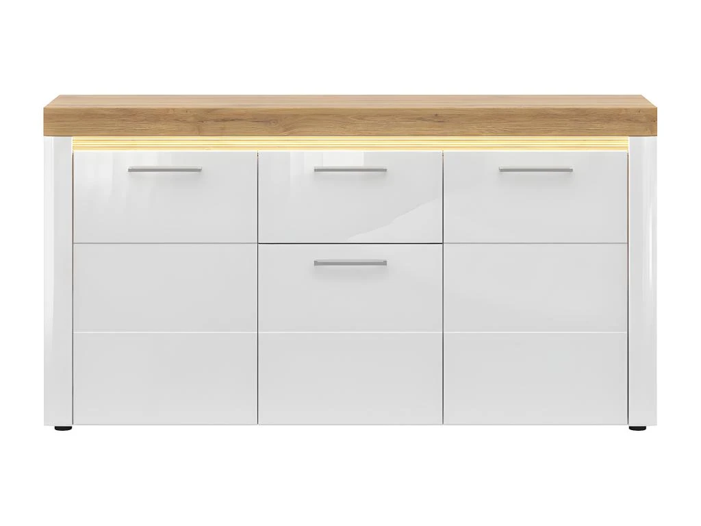 Caractéristiques : 3 portes – 1 tiroir – 6 niches – Barre LED Incluse – LED à brancher sur prise secteur avec un bouton allumer / éteindre – Portes et tiroirs équipés du système de fermeture silencieuse