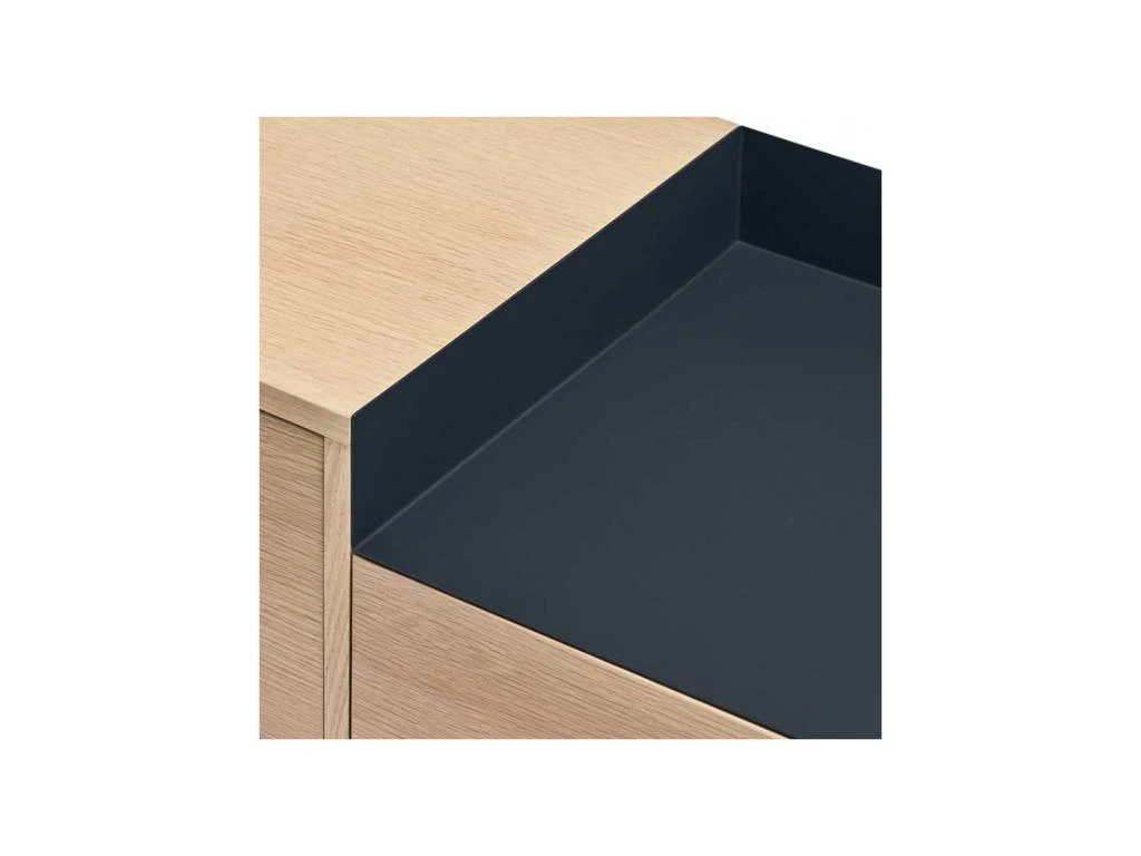 A l’aise dans un coin repas contemporain ce meuble de rangement bénéficie d’une grande robustesse et d’une légèreté visuelle satisfaisante grâce à son piétement en métal laqué Bleu pétrole, assorti à l’empiècement du plateau.