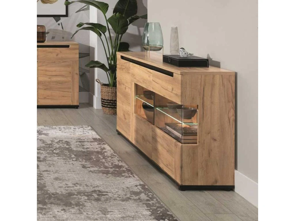 Buffet Haut Collection DARWIN. Couleur épicéa Et Noir. 3 Portes Et 3 Tiroirs.