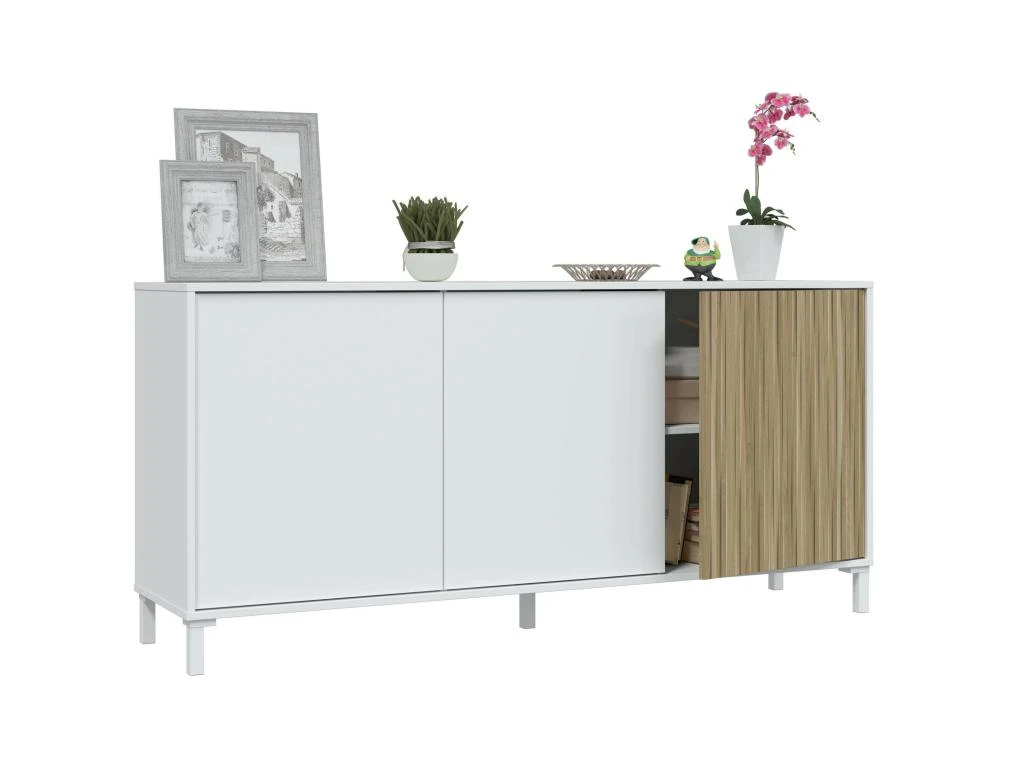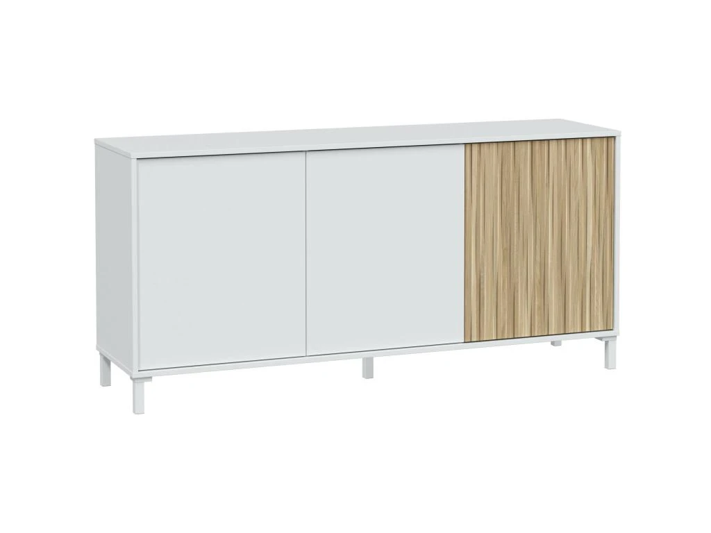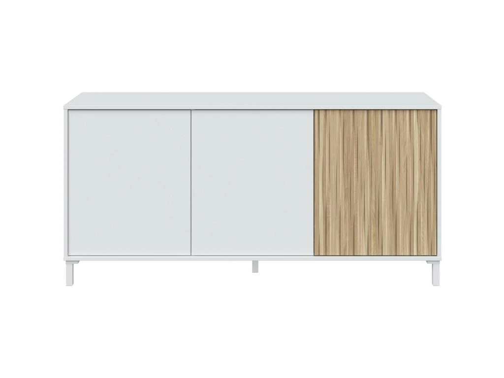 Buffet 3 Portes Koln, Couleur Blanc Brossé Et Bois, 136,5 Cm Largeur