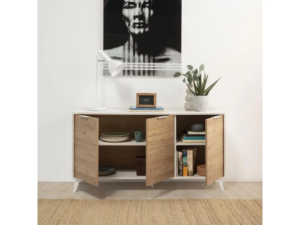 - Fabriqué en Espagne avec mélamine de de la 16 mm la meilleure qualité en couleur Blanc effet brossé et Bois naturel.