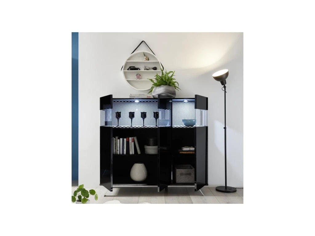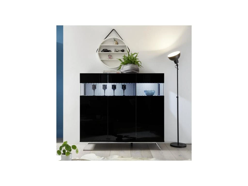 Les 3 portes proposent un panneau intermédiare vitré qui recevra quelque bel objet de collection, l’éclairage LED’s mettra parfaitement en valeur le contenu des niches et apportera un éclairage indirect agréable dans votre pièce.