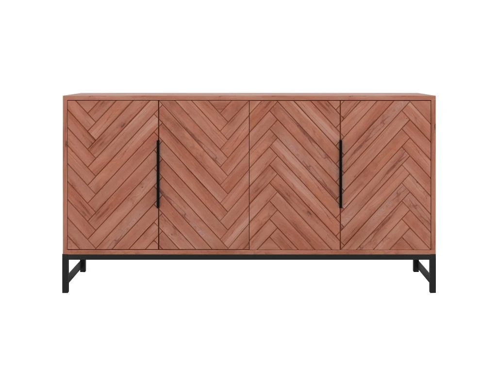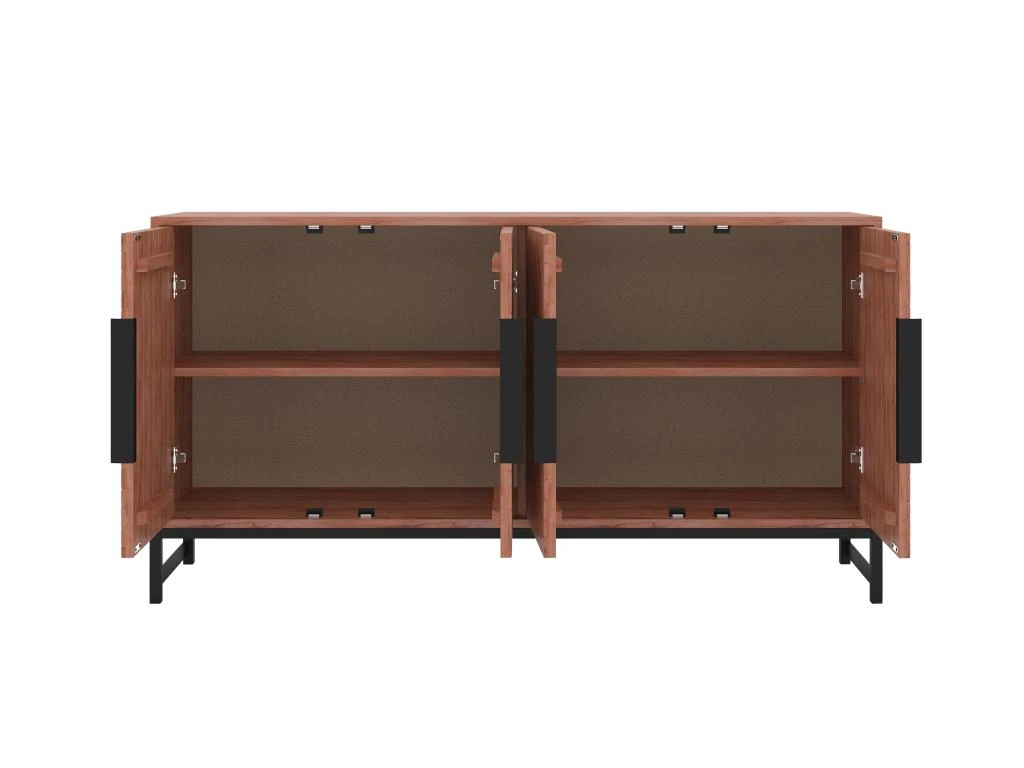 Buffet 4 Portes – Bois D’acacia Et Métal – Naturel Et Noir – VEDILA
