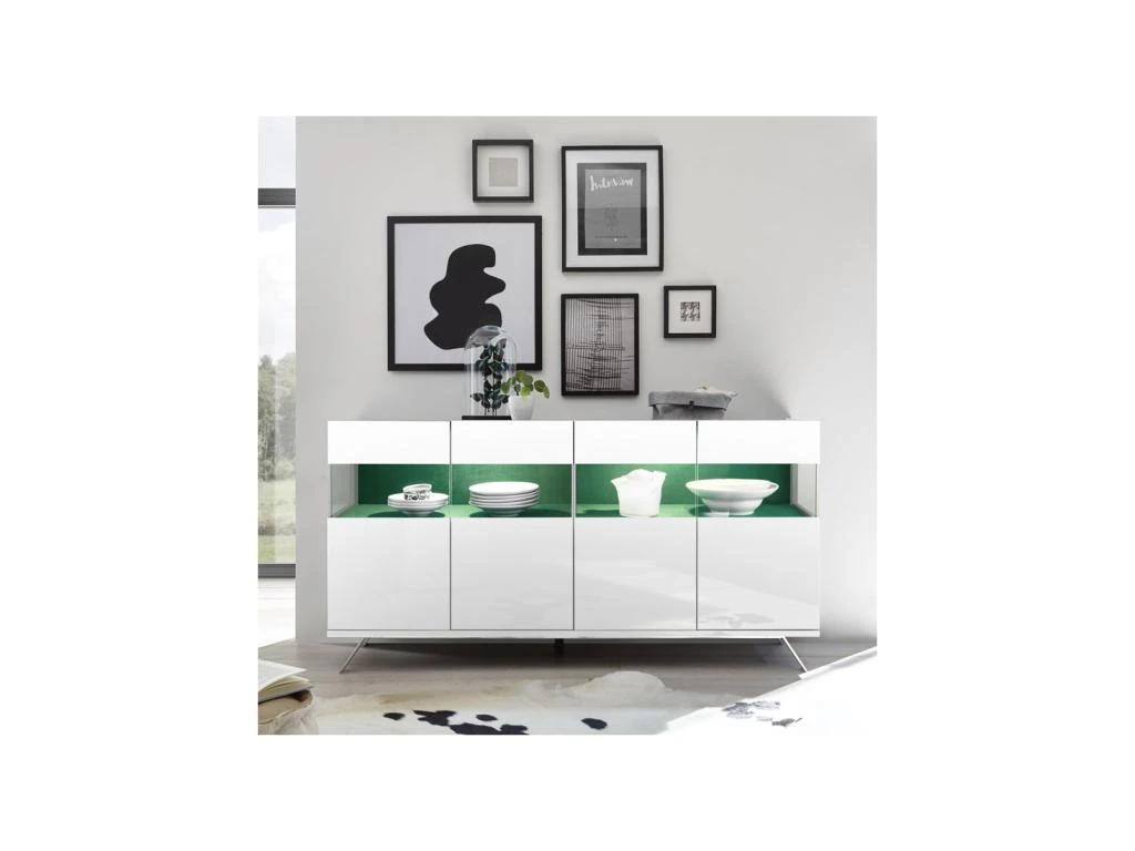 Les 4 portes proposent un panneau intermédiare vitré qui recevra quelque bel objet de collection, l’éclairage LED’s mettra parfaitement en valeur le contenu des niches et apportera un éclairage indirect agréable dans votre pièce.