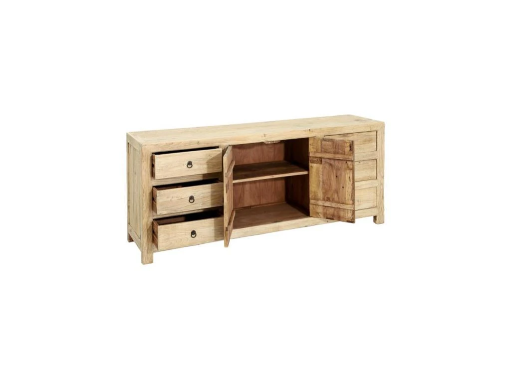 Totalement rĂ©alisĂ©e en bois d’Orme teinte naturelle cette enfilade apportera de la chaleur et de la clartĂ© dans votre salle Ă manger, vous profiterez ainsi d’un bois au veinage dĂ©licat Ă la perception haut de gamme.