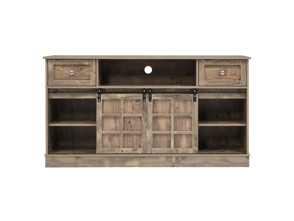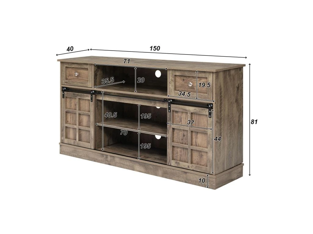 Buffet Avec 2 Portes Coulissantes + Compartiments – étagères Réglables – Naturel