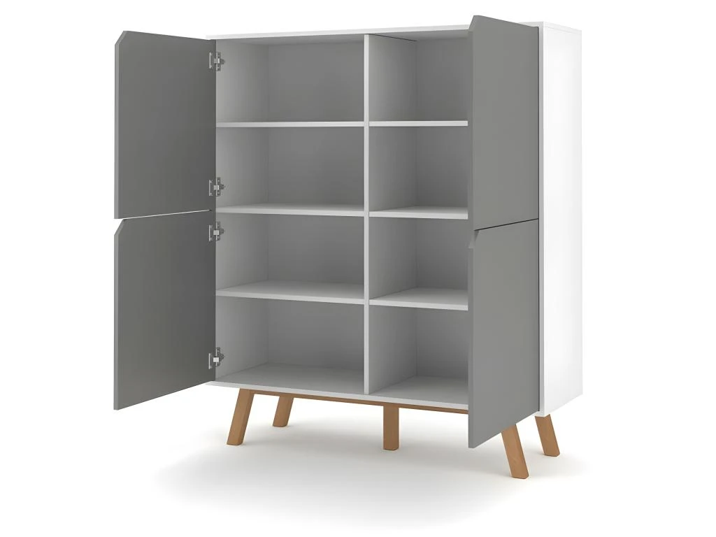 Buffet Haut Design Type Scandinave Collection AOMORI 4 Portes, Coloris Blanc Et Gris Mat