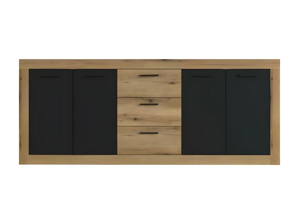Buffet Haut Collection DARWIN. Couleur épicéa Et Noir. 3 Portes Et 3 Tiroirs.