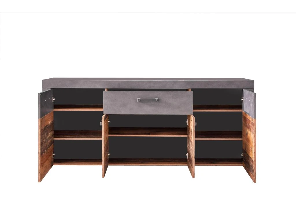 Buffet SABONI – 2 Portes, 2 Tiroirs Et 1 Niche – Noyer Et Anthracite