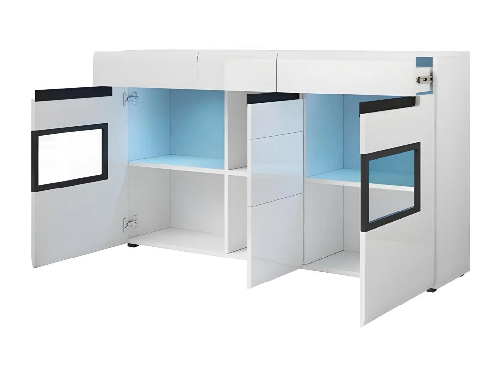 – CARACTÉRISTIQUES : Buffet partiellement vitrées, éclairage LED intégré. 6 espaces de rangement derrière les 3 portes. 3 tiroirs sur le haut du buffet.