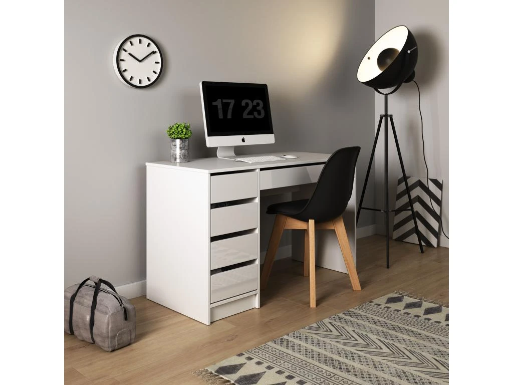 Bureau COLETTE Rangement Avec 5 Tiroirs Et Poignées Coquille, En Pin Massif Lasuré Blanc