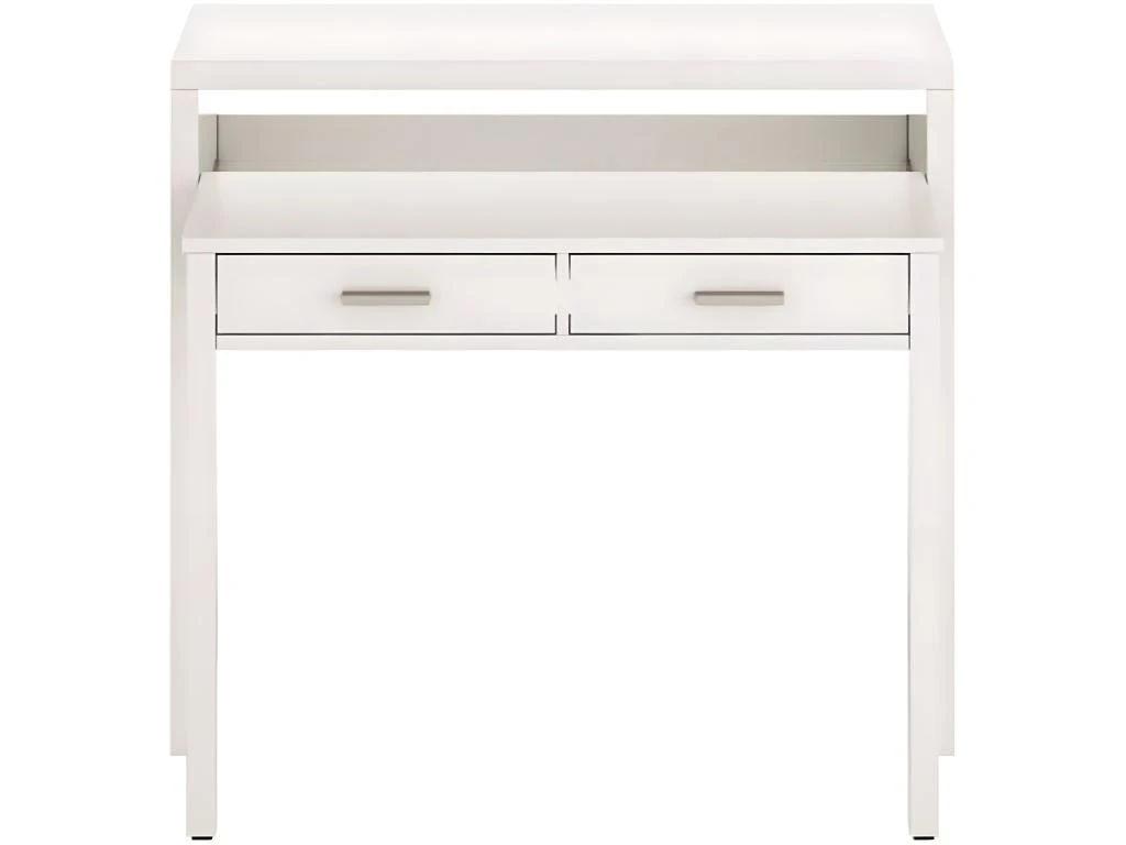 Bureau COLETTE Rangement Avec 5 Tiroirs Et Poignées Coquille, En Pin Massif Lasuré Blanc
