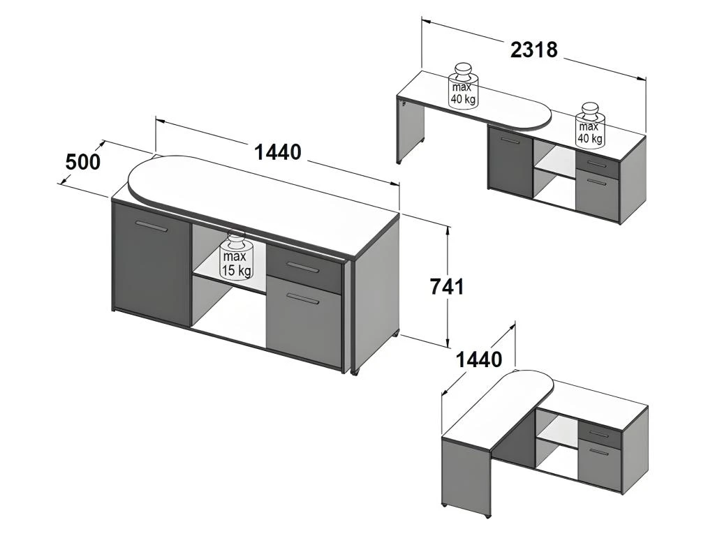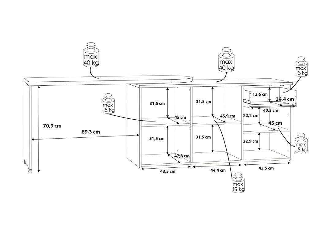 Bureau D’angle Rotatif 144 Cm à 232 Cm Décor Bois Et Blanc – ALKIRA