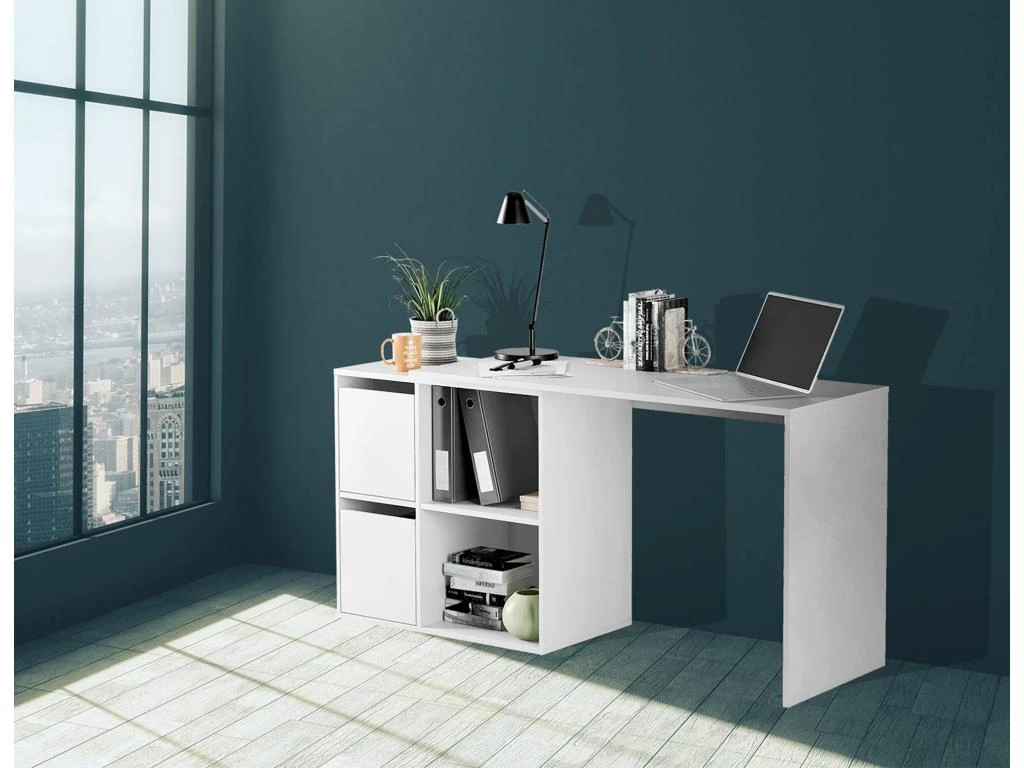 STRUCTURE ET UTILISATION – Bureau d’angle ou linéaire multipositions réversible de style moderne avec quatre étagères, dont deux fermées par des portes battantes sous le plan de travail – Le bureau d’angle pratique, innovant et fonctionnel est la solution idéale pour meubler de petits espaces, une maison d’étude, chambre ou bureau de manière intelligente: il se caractérise par un style moderne et linéaire – La surface de travail est spacieuse et vous pouvez utiliser les étagères pour ranger vos objets lorsqu’ils ne sont pas utilisés – Bureau parfait pour chaque besoin grâce à l’assemblage multi-positions , selon si nécessaire, vous pouvez obtenir un bureau linéaire ou un bureau d’angle.