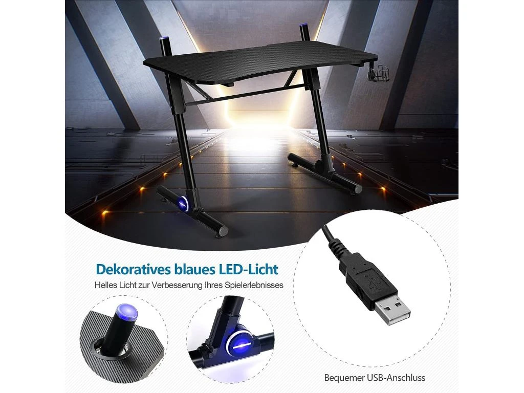【Structure robuste en forme de Z :】Fabriqué en bois composite épais et résistant, ce bureau de gaming est très solide et résistera dans le temps. La base en tube de fer en forme de Z renforce la stabilité de l’ensemble. De plus, les patins réglables contribuent à la stabilité de la table même sur un sol irrégulier.