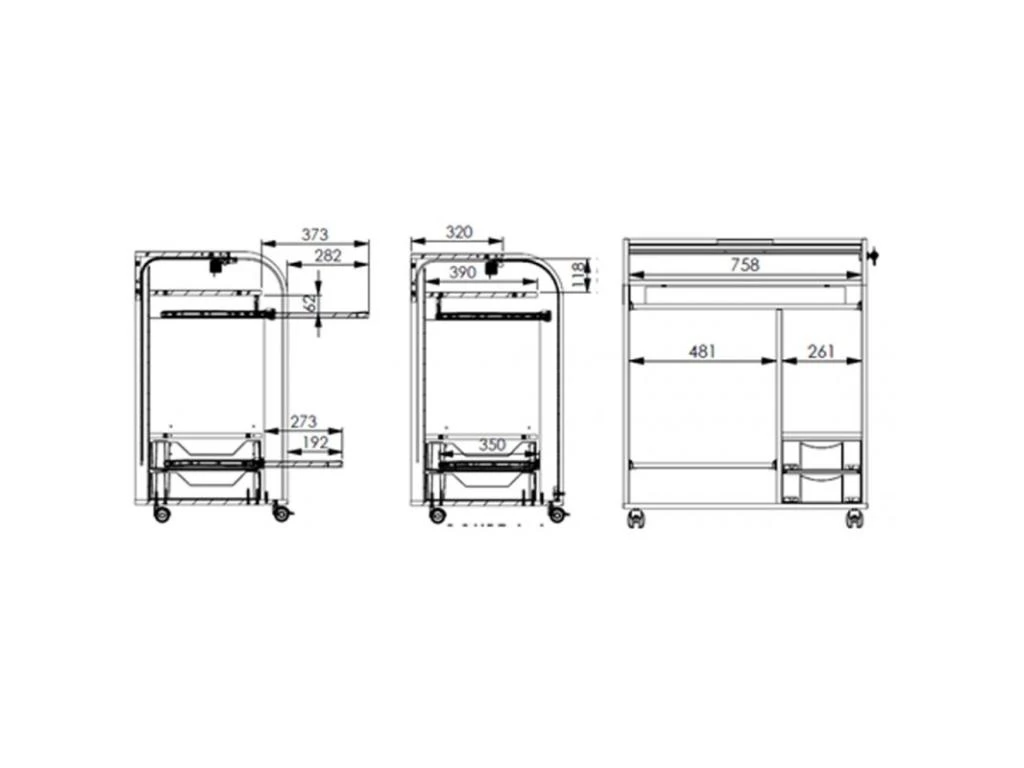 – 1 niche avec tablette coulissante réglable en hauteur (imprimante) (en bas à gauche)