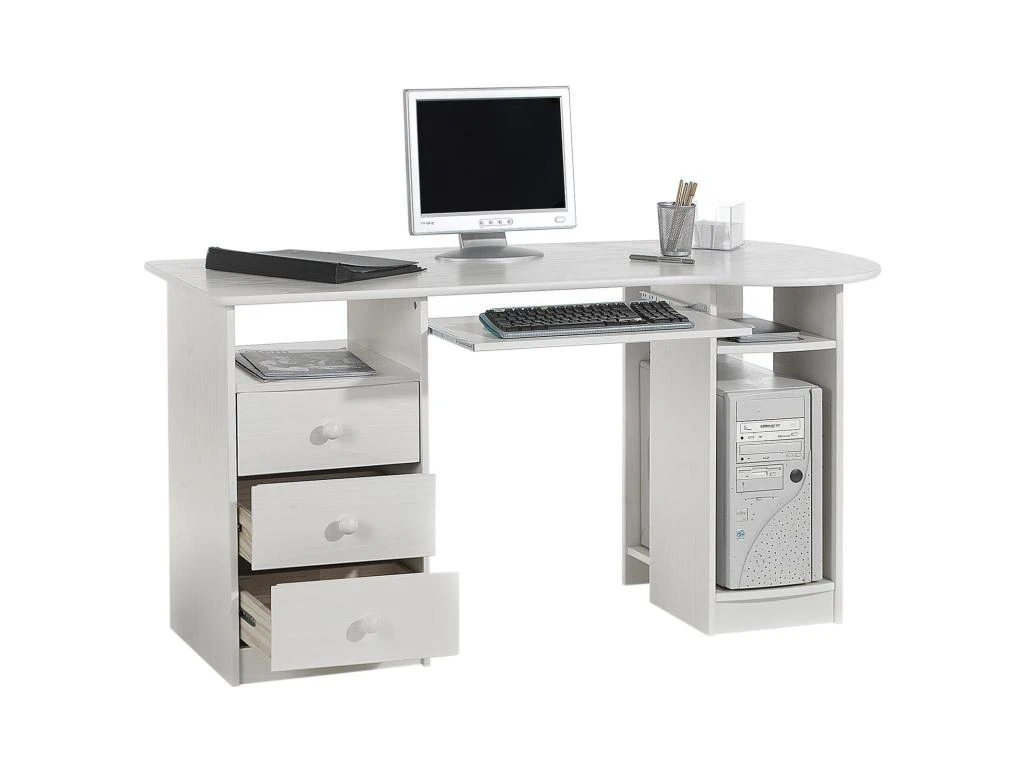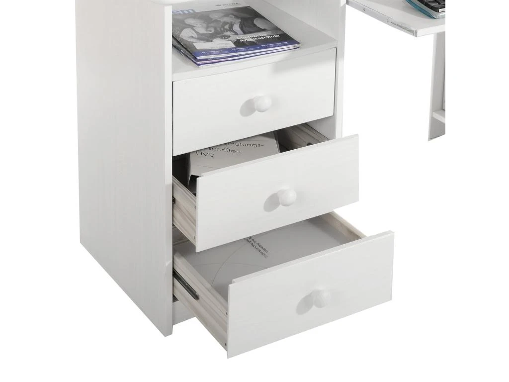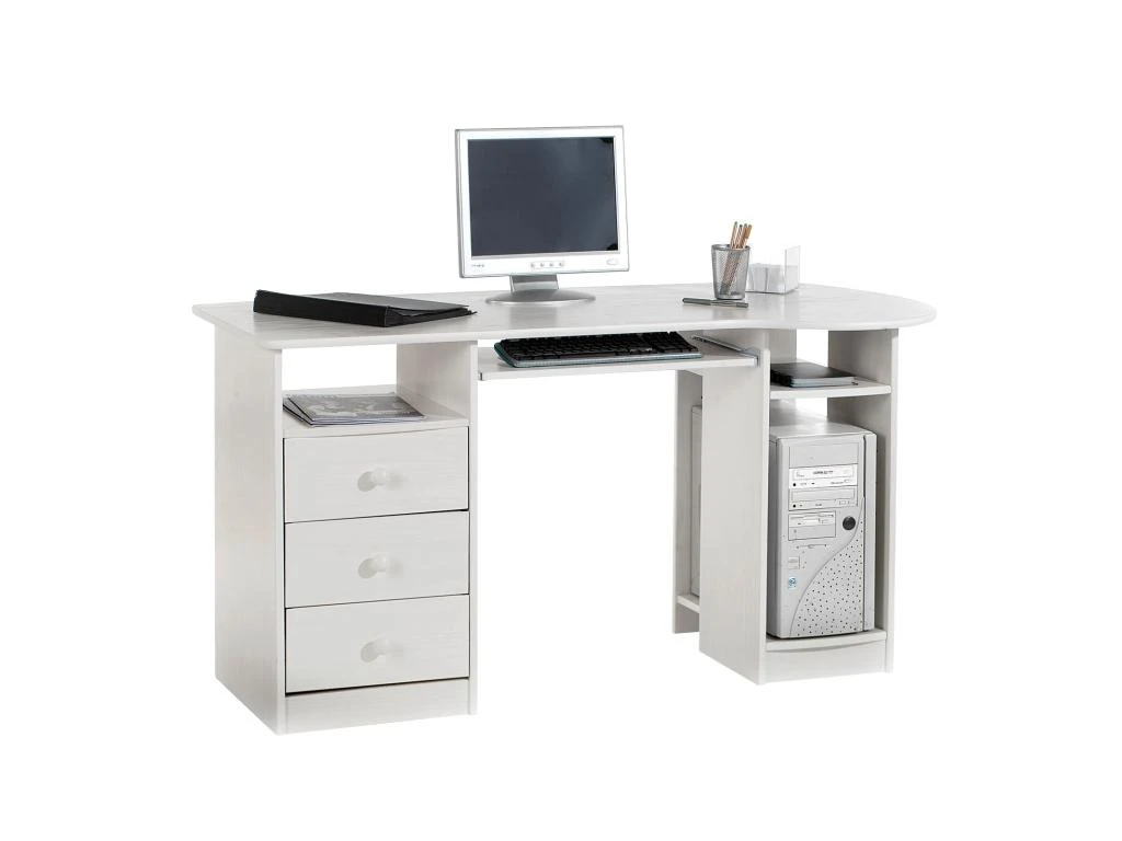 – Le bureau est fabriqué en bois massif lasuré blanc.