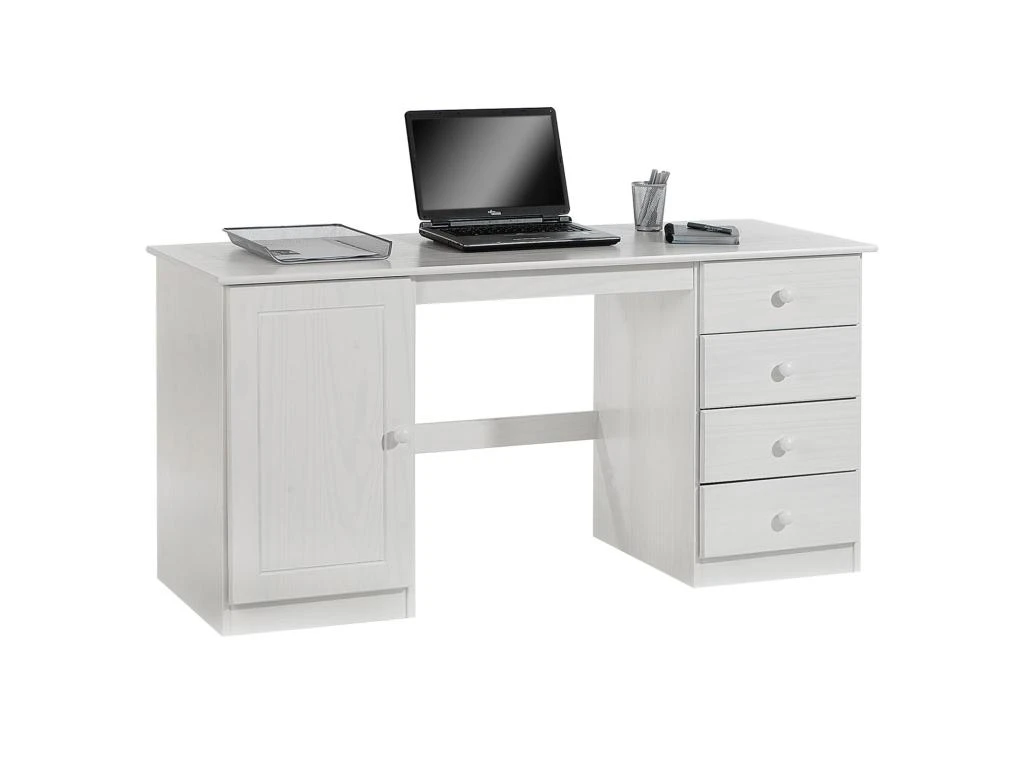 – Le bureau est fabriqué en pin massif, lasuré blanc.