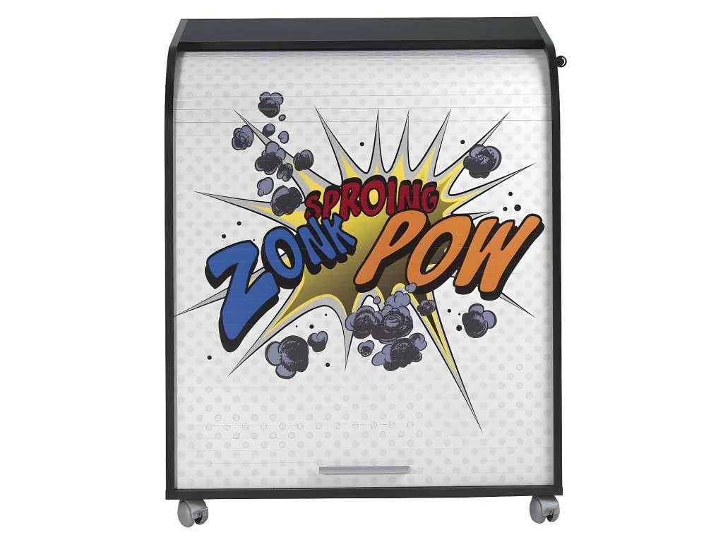 Les multiples niches garantissent de ranger un grand nombre de dossiers et de fournitures, le tout sera parfaitement mis en sécurité grâce au grand rideau coulissant de haut en bas et équipé d’une fermeture à clef.