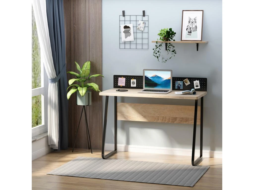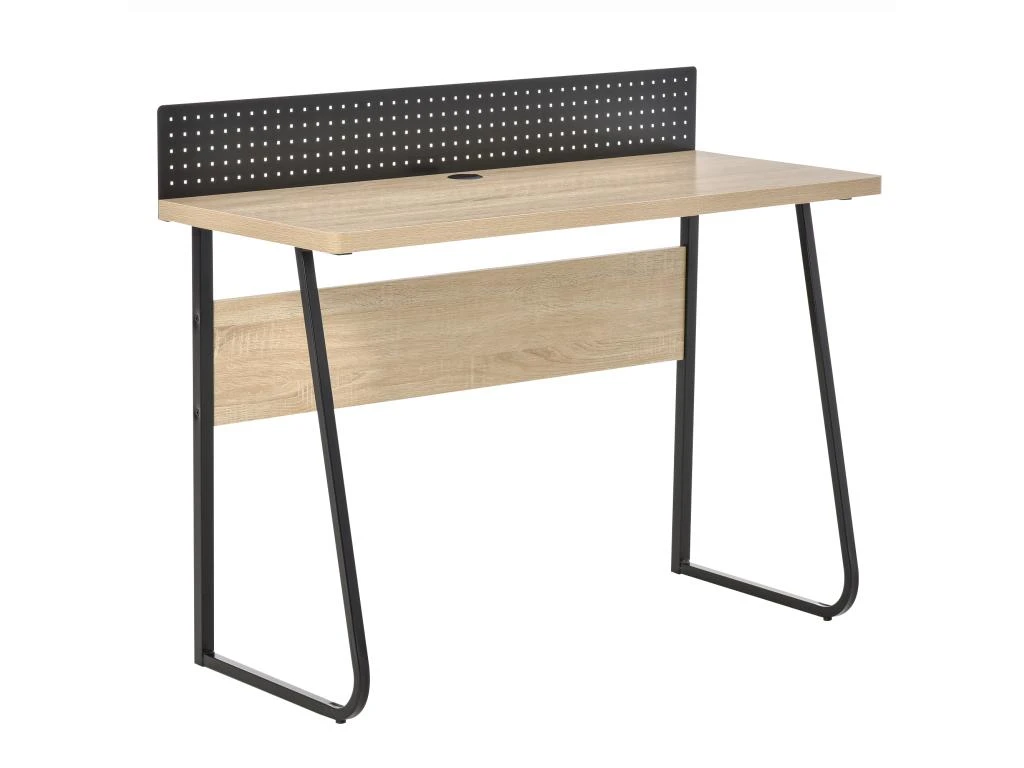 Bureau Secrétaire Style Industriel Dim. 110L X 48l X 90H Cm Châssis Métal Noir Plateau Support Panneaux Particules Chêne Clair