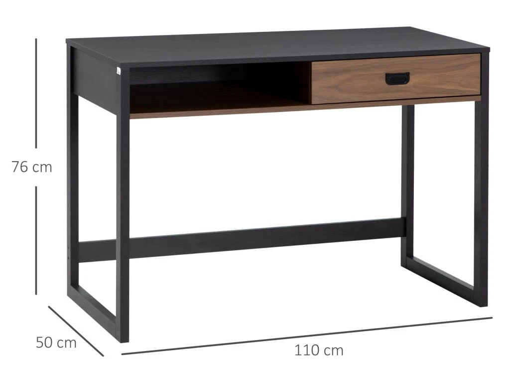 – Bureau design industriel mélant avec élégance aspect bois noir et imitation bois de noyer