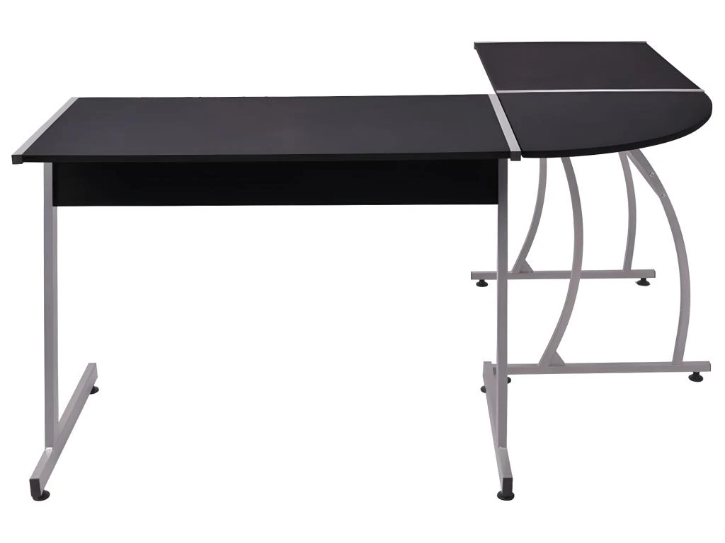ComposĂ© d’un cadre mĂ©tallique durable et d’un dessus de table en agglomĂ©rĂ© de haute qualitĂ©, ce bureau de coin est solide, robuste et stable.