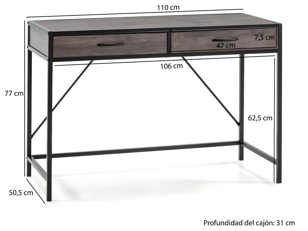 · Bureau avec 2 grands tiroirs.