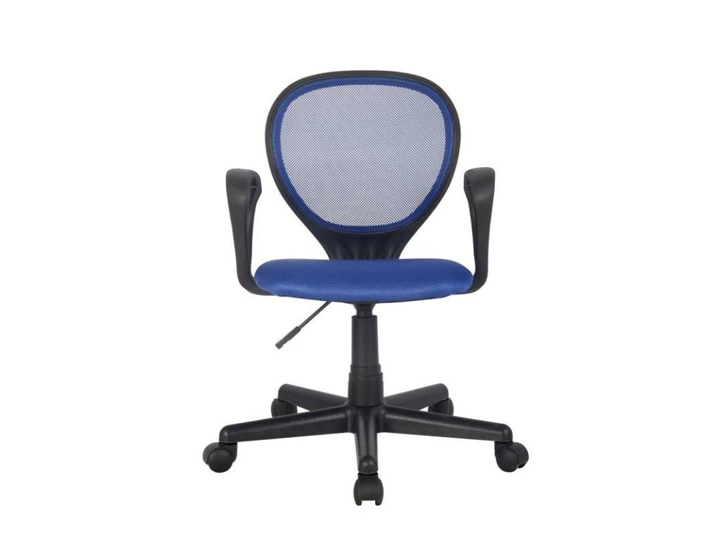 Chaise de bureau bleue et noire pivotante et à roulettes