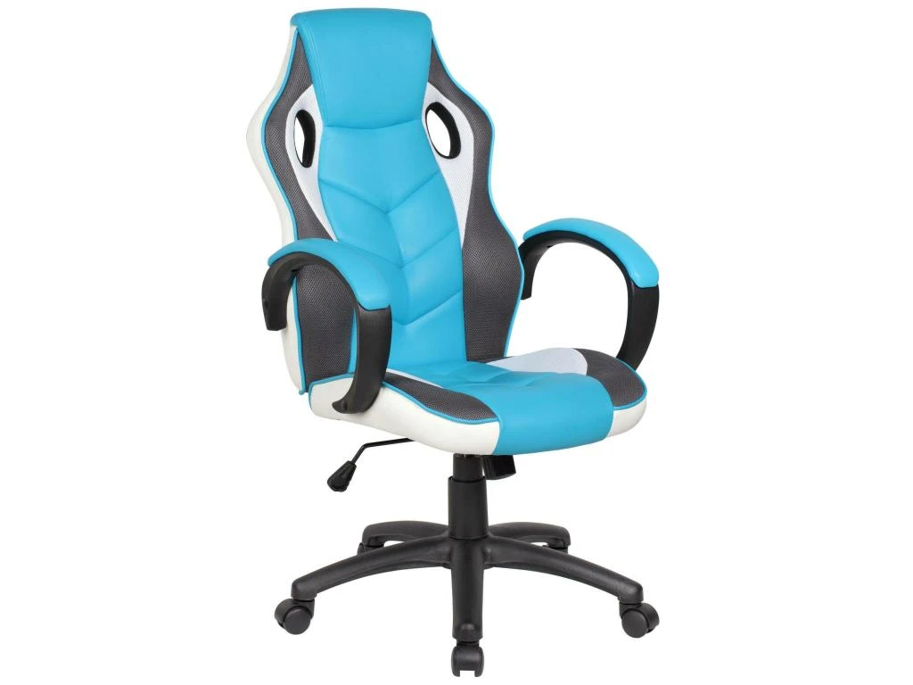 Chaise De Jeu Darlanc, Fauteuil De Jeu Pour Adultes, Chaise De Bureau, 66x61h104/114 Cm, Bleu Ciel Et Blanc