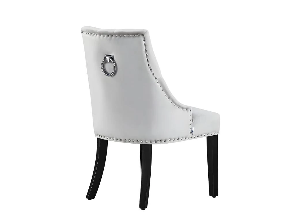 La chaise de salle à manger Windsor est une pièce étonnante qui combine des éléments de design classiques avec une esthétique moderne. Ses arcs larges et ses bords doux lui confèrent une courbe design, ce qui le rend visuellement attrayant et accrocheur. La chaise est ornée d’un magnifique capitonnage en diamant, de clous en métal et d’une poignée de heurtoir à l’arrière, ajoutant une touche raffinée à son aspect général.