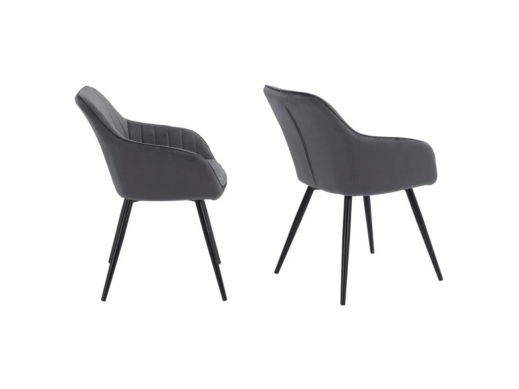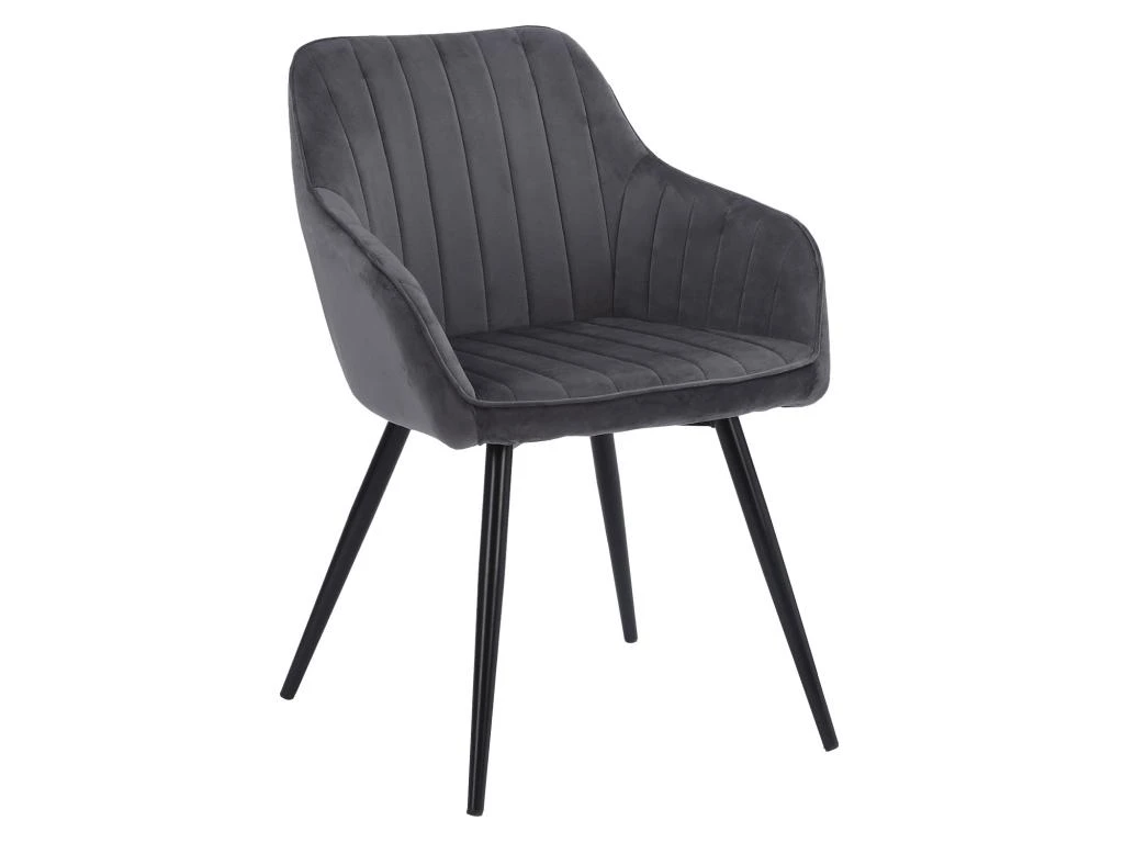Disposez cette chaise autour de votre table pour lui donner le plus bel effet. Elle fera sans aucun doute sensation auprès de vos invités et vous ravira au quotidien. Son revêtement en velours, disponible en plusieurs coloris, offre un toucher tout doux et du charme à votre table de salle à manger ou de cuisine. De plus, vous y serez bien assis tout au long de vos repas grâce à son rembourrage moelleux, à son dossier qui permet un maintien optimal du dos et à ses accoudoirs. Ergonomique, mais aussi stable et robuste, cette chaise comporte quatre pieds noirs en métal munis de patins antidérapants. Elle vous sera indispensable pour profiter de tous vos moments de convivialité en famille ou entre amis.