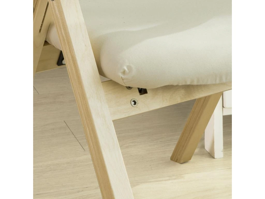 – Structure stable en bouleau multiplis vernis naturel, Housse en tissue polyester, amovible et lavable.