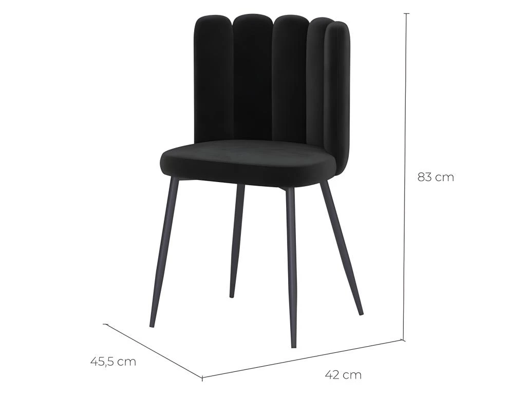 Grâce Ă ses dimensions harmonieuses L 45,5 x P 42 x H 83 cm, notre chaise Rosy en velours noir (lot de 2) s’imposera comme un must. Vous serez comblĂ© par son assise confortable 47 x 42 cm et la sensualitĂ© de son revĂŞtement au toucher incomparable.