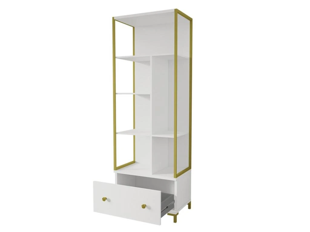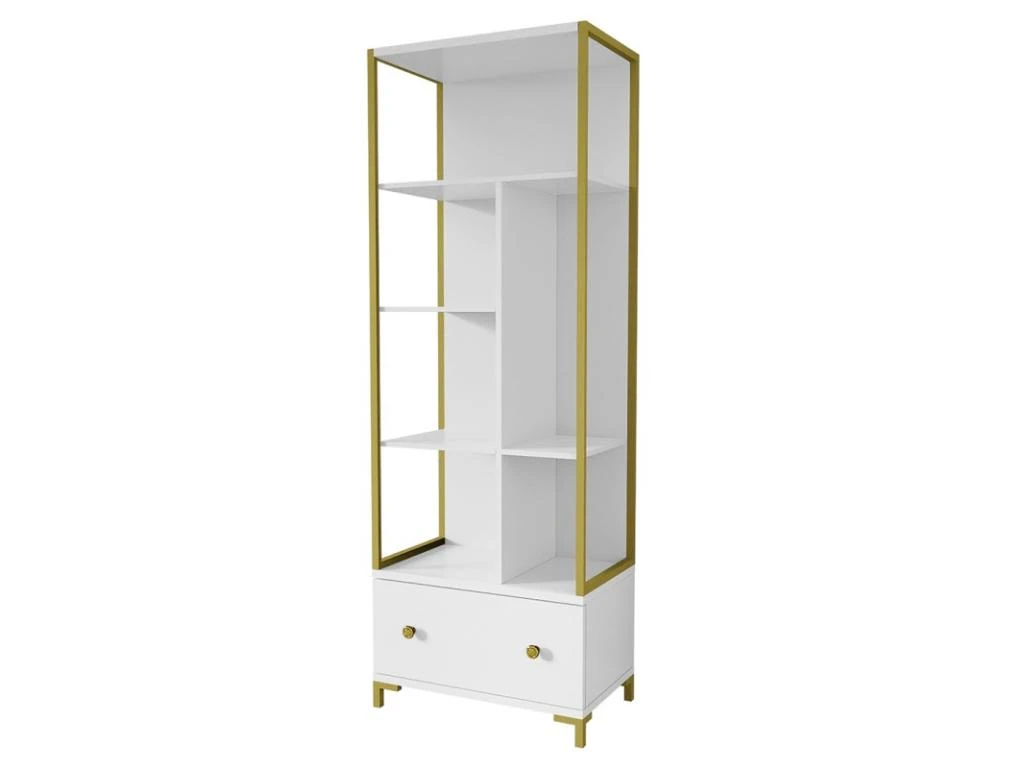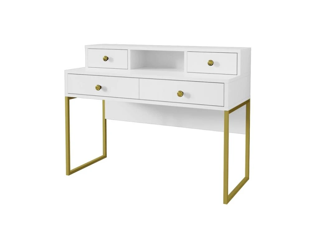 – COLORIS : Structure et poignées tiroirs en métal doré, meuble couleur blanche.