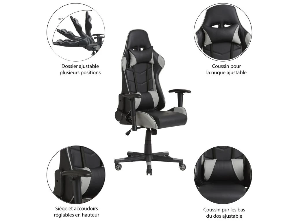 Ce fauteuil adopte le design populaire des sièges de voiture sportive, qui présente un style sportif et agressif qui assure une assise confortable pendant plusieurs heures.