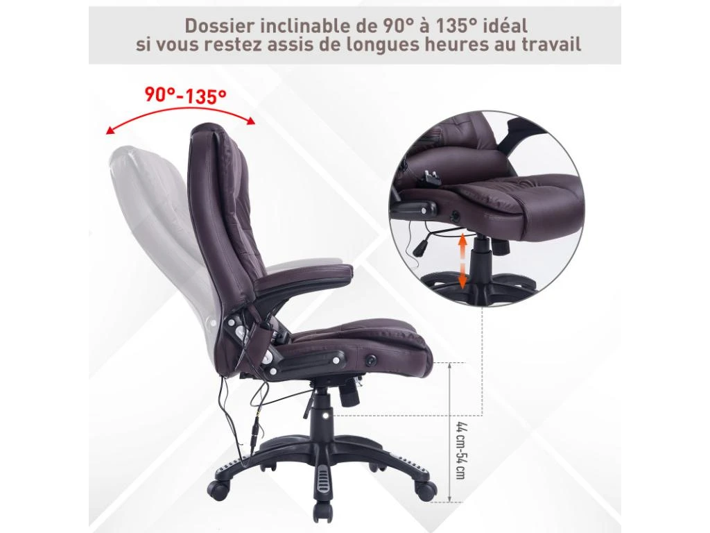 -Dossier chauffant pour relaxer le dos température de chauffe est 10° supérieure à la température ambiante