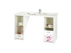 Bureau COLETTE Rangement Avec 5 Tiroirs Et Poignées Coquille, En Pin Massif Lasuré Blanc