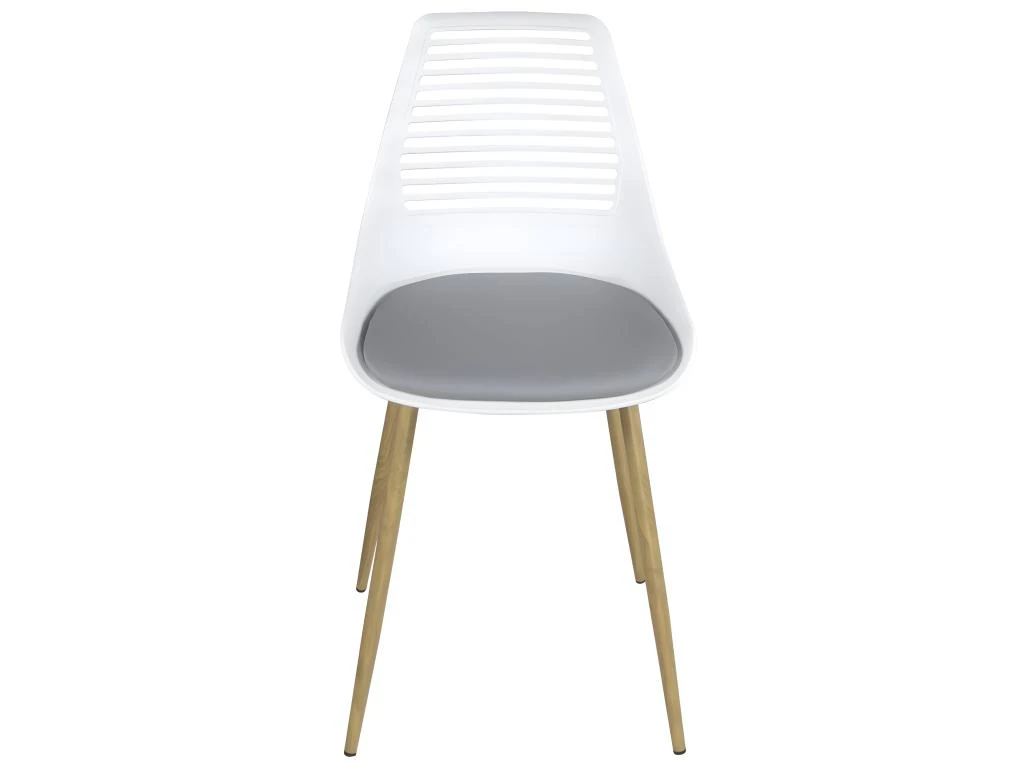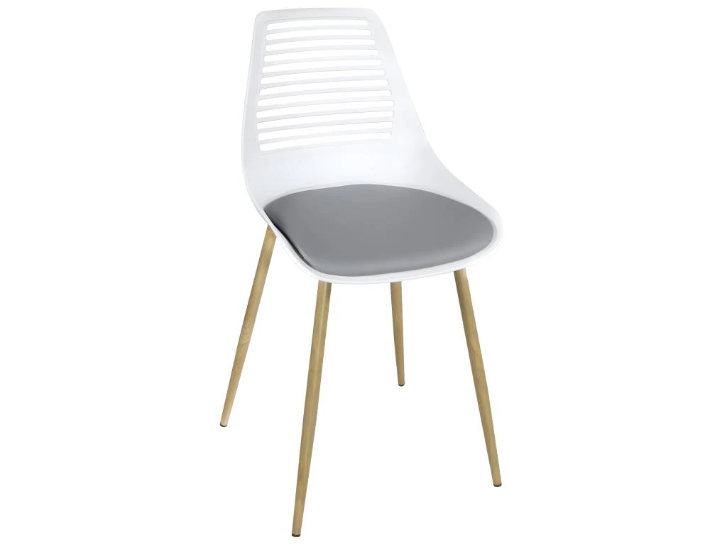– Siège en polypropylène avec coussin fixe habillé de simili et rembourré