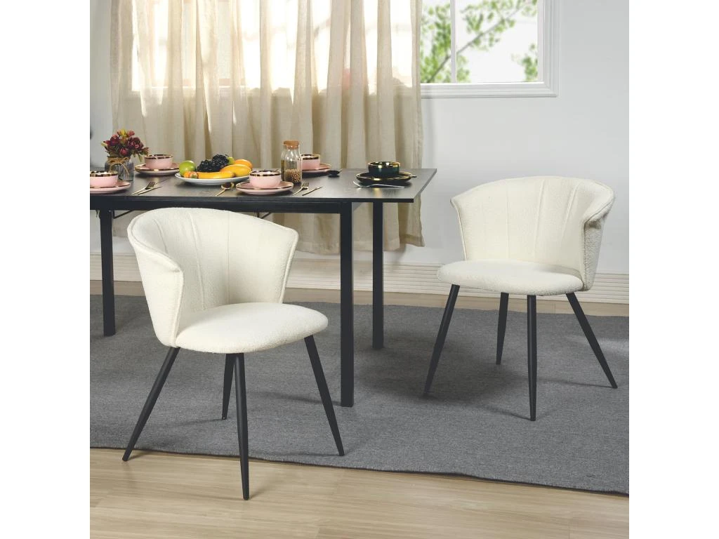 Une chaise venue du froid: la tendance du tissu bouclette arrive des contrées nordiques pour réchauffer nos intérieurs. Dotée de lignes épurées et habillée d’un blanc lumineux, elle invite à des moments conviviaux à partager autour d’une table, à un dîner en amoureux ou un goûter gourmand. Toutefois, son côté chaleureux et cosy l’incite aussi à se frayer un chemin du côté de la chambre à coucher !