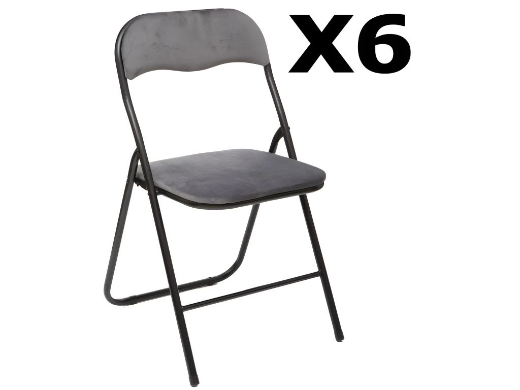 Lot de 6 chaises pliables avec cadre en métal et velours gris foncé, pratique et facile d’entretien.