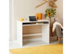Bureau ALICE Table De Travail Avec 1 Niche De Rangement Sous Le Plateau, En Pin Massif Lasuré Blanc