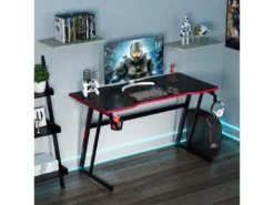 Bureau Gamer 120×60 Cm, Avec Surface En Fibre De Carbone, Crochet Pour Casque, Porte-gobelet